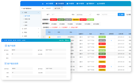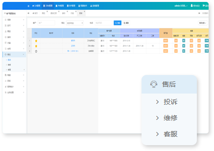 客服管理模块中植入的提醒功能,可定时、定期或按周期提醒客服回访;投诉功能可以进行售后维护。
