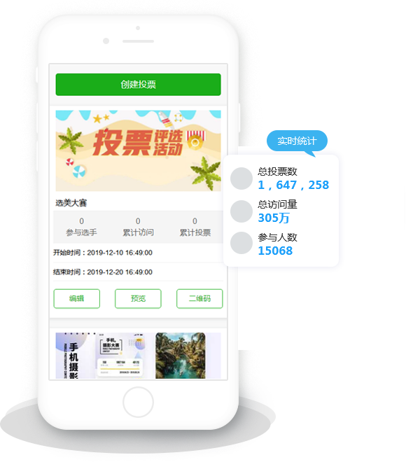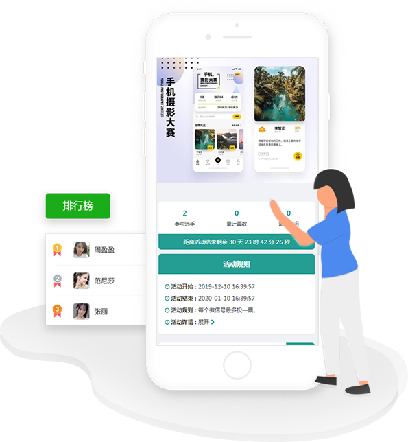 专业第三方微信投票评选活动制作平台,3分钟即可制作一场活动,已稳定运行853天,创建活动超200万场,无任何隐性消费。